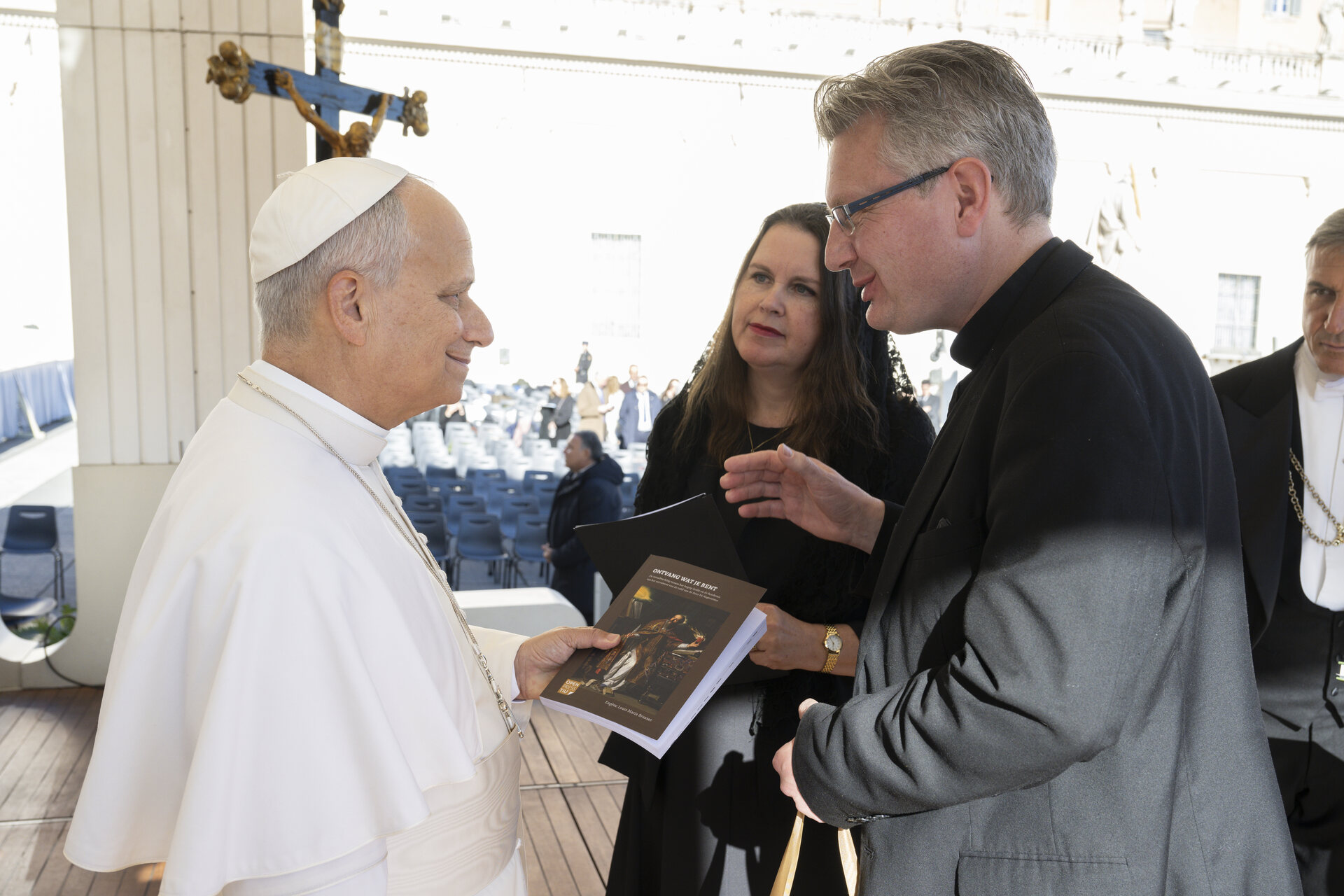 Eugène Brussee was samen met zijn vrouw Susanne een aantal dagen in Rome: een cadeau van het parochiebestuur voor zijn promotie aan de Tilburg University op 31 oktober. Op 10 december waren zij op audiëntie bij Paus Leo en heeft Eugène zijn proefschrift kunnen overhandigen aan de Paus. Ook heeft Susanne aan de Paus haar Marialezing over verbinding en vrede aangeboden.