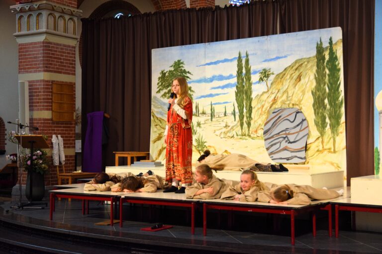 Op donderdag 2 april werd er in de ochtend twee keer een Paasmusical opgevoerd door en voor kinderen van basisschool de Kerkuil.