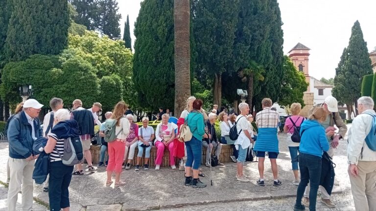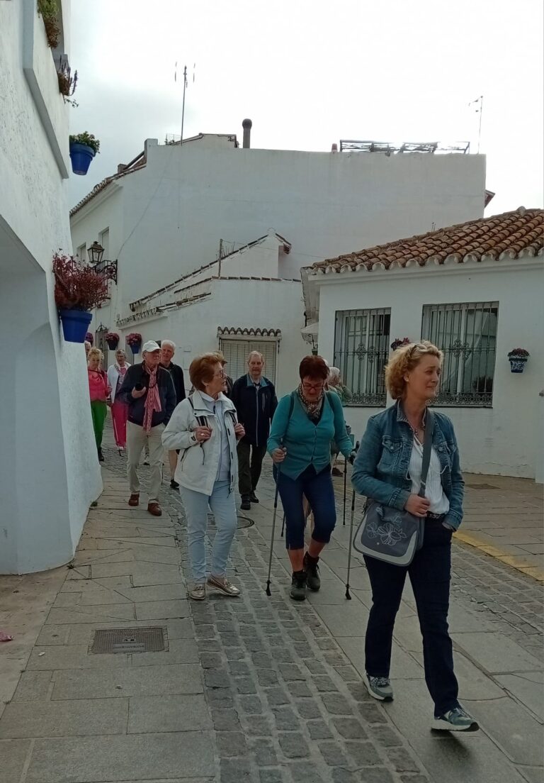 Deze vrijdag zal een relaxtere dag worden. Alle reisgenoten zijn uitgerust en gezond de bus ingestapt. Na een korte rit reden we het witte dorp Mijas binnen. Prachtig gelegen tegen de bergwand aan. Het dorp moest duidelijk nog wakker worden. Plaatselijke voorbijgangers die Engels spraken, vertelden ons dat veel bewoners aan het werk zijn, maar ook dat veel appartementen maar 6 maanden in het jaar bewoond worden door overwinteraars. Mijas is een schoon dorp met heel veel kleurrijk aardewerk met bloemen en planten. We liepen o. a. langs een molen en een stierengevecht-stadion. Ook bezochten we een buurtkerkje dat gewijd is aan St. Anna en spontaan werd een meerstemmige Taizé-acclamatie ingezet. Hadden we de dag er voor de koffie erg gemist, nu zorgden we ervoor dat het ons geen tweede keer zou gebeuren.