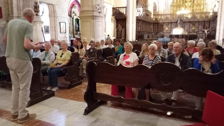Ten slotte bezochten we de kerk die op de plek staat waar eerder een Romeinse tempel en later een prachtige moskee heeft gestaan. In de kerk stonden wij stil bij het beeld van de ‘Maagd van de Grootste Smart’ en het lijden van zoveel moeders en ouders rond hun overleden kinderen en dierbaren. Zij die machteloos moeten toekijken zoals Maria tijdens de kruisweg van haar zoon. Ook stonden we stil bij Co Kerssens die vlakbij Ronda in 2010 overleed tijdens een noodlottig ongeluk. Dat gebeurde tijdens de monsterfietstocht van Limmen naar Burkina Faso.