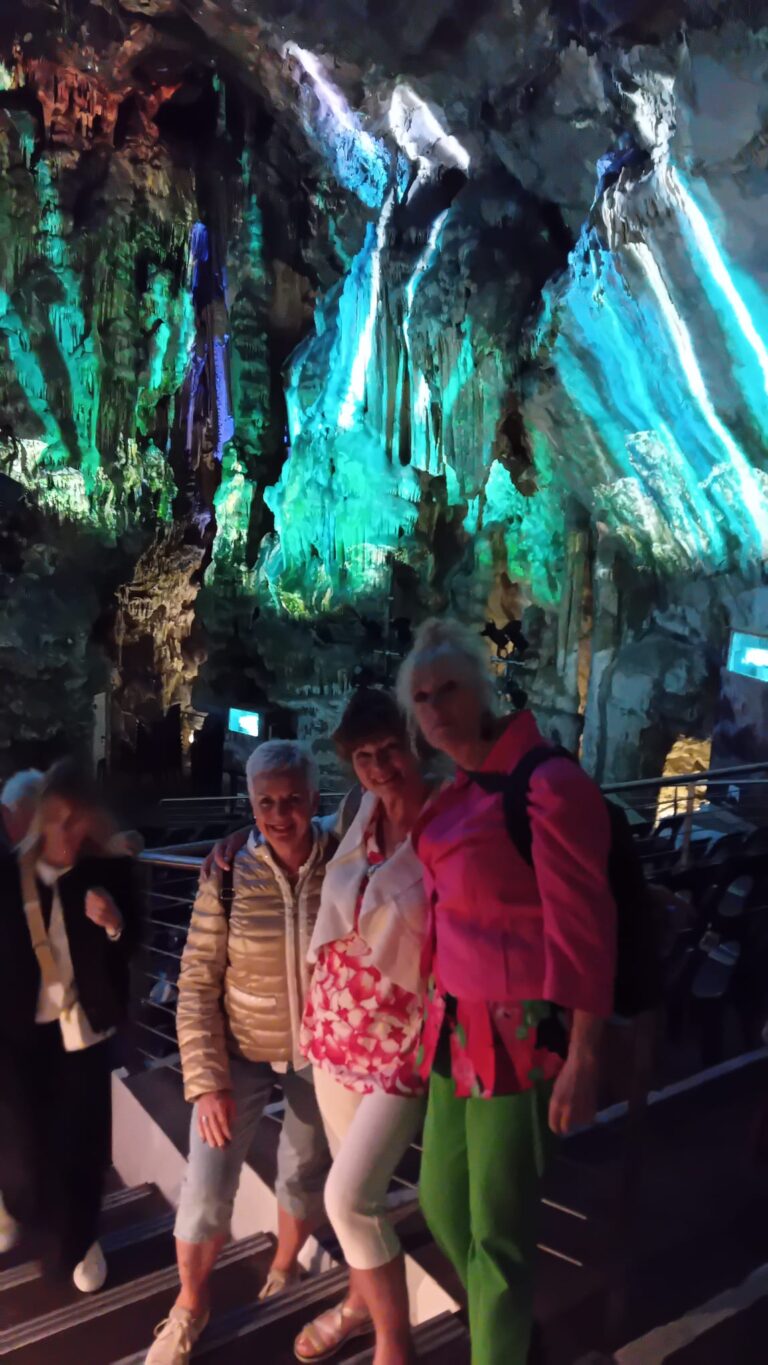 Het hoogtepunt was een wandeling door grotten met stalagmieten en stalactieten. Met geluid- en bewegende kleureffecten keken we onze ogen uit. Het was een ware verrassing. Het mooie uitzicht vanaf de rots op het Britse conclaaf en het zien landen en opstijgen van de vliegtuigen kreeg al onze aandacht. Spoorbomen die open en dicht gingen voor verkeer en wandelaars als er weer een vliegtuig voorbijkwam. En waar natuurlijk ook tijd voor uitgetrokken werd, waren de berberaapjes die daar vrij rondlopen en weten dat er bij toeristen eten te krijgen is.