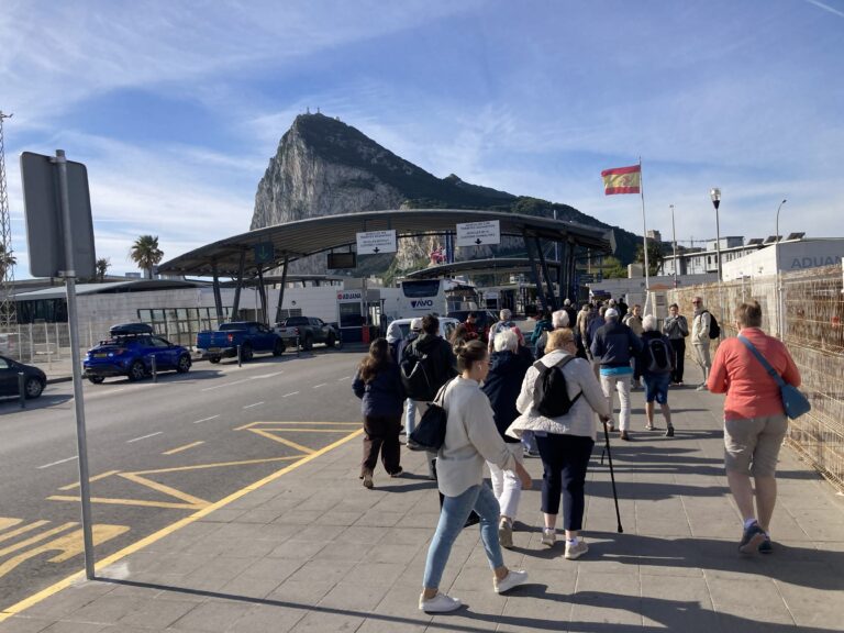 In het centrum kregen we toen nog een echte Engelse maaltijd met ‘fish and chips’. Na het eten werd ons duidelijk dat onze autobus de opdracht had gekregen ons in Gibraltar op te halen. Dat was niet zo’n goed idee, want dat betekende dat we alle koffers uit de bus moesten halen en met koffers en al langs de douane moesten lopen om aan de andere kant de koffers weer in de bus te deponeren. Het was nou eenmaal zo, want er wordt veel gesmokkeld in en rond Gibraltar, zo werd ons gezegd.